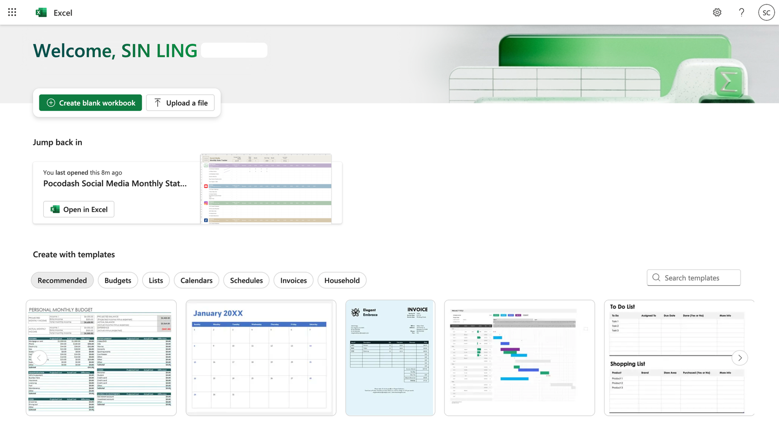 - Congratulations! Now you can start using Microsoft Excel Online for free. Create a blank workbook or upload template you purchased from our store.