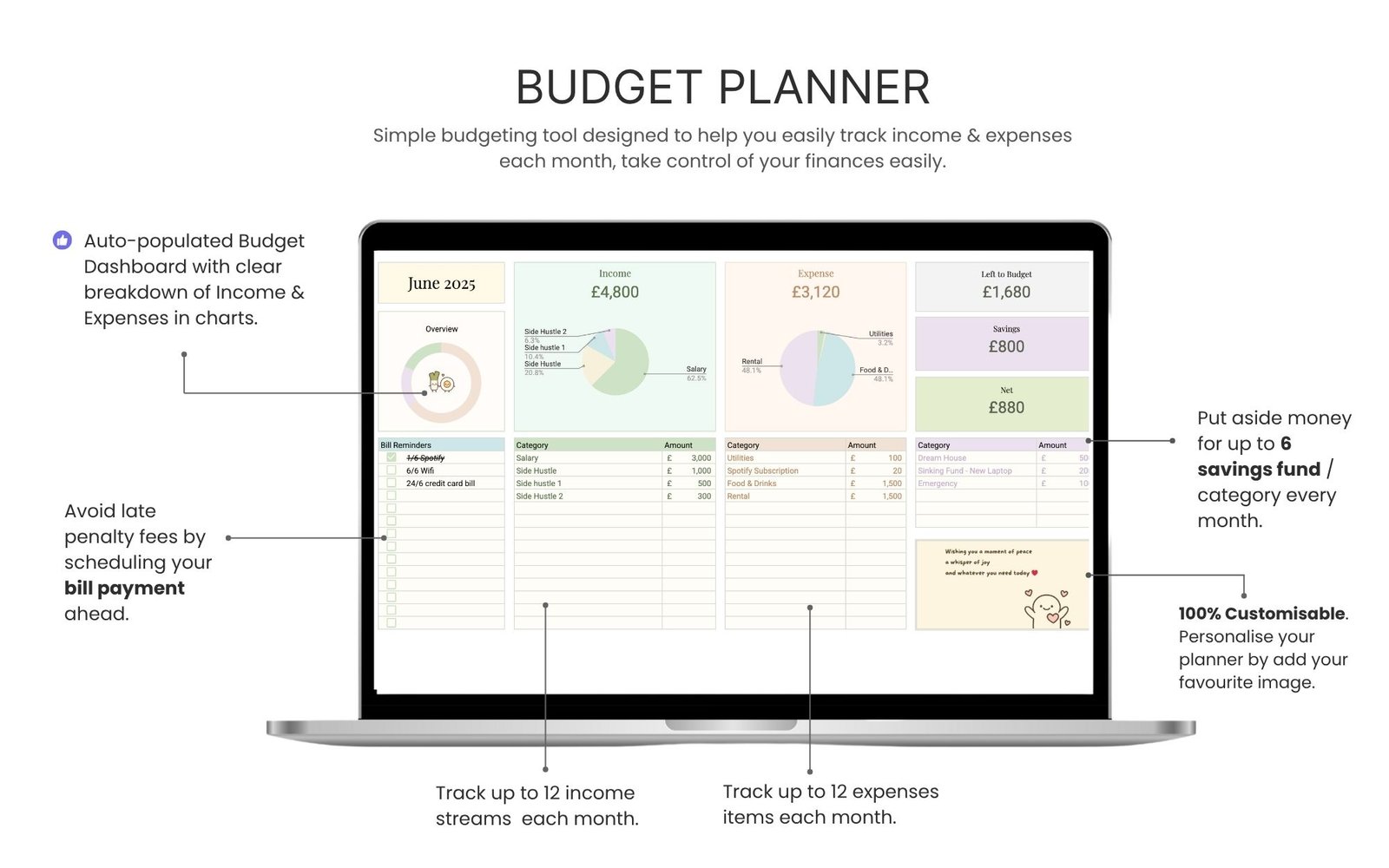 โ Track Monthly Income & Expenses: Keep a close watch on your finances to avoid overspending. Simply fill in up to 15 rows of income and expense items each month!
