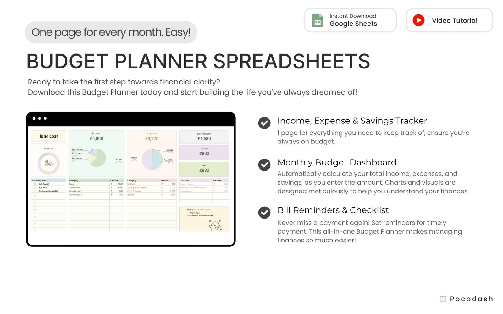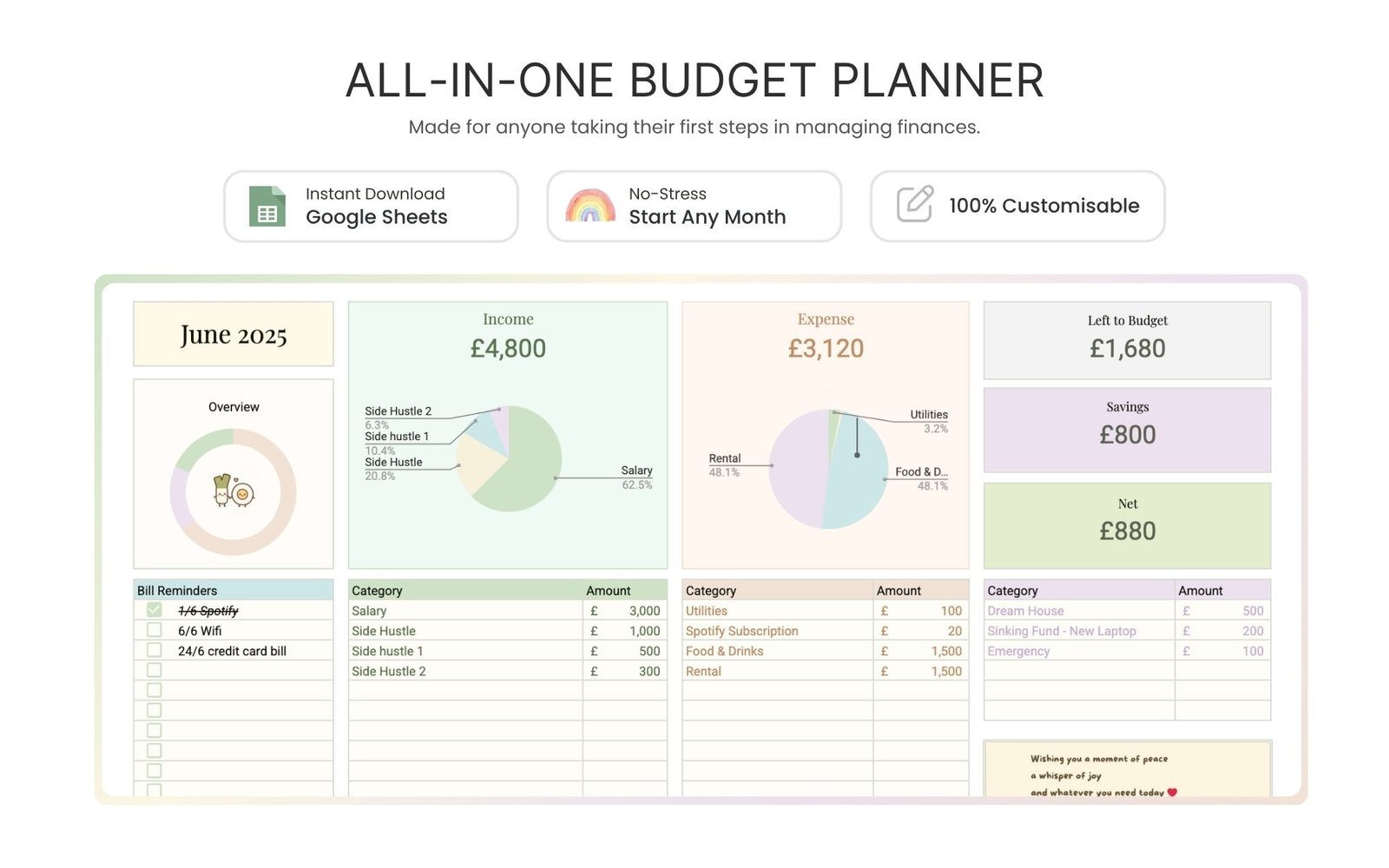 Are you struggling to keep your finances organized? ๐ฐ You’re not alone! This Budget Planner Spreadsheets is designed for anyone looking to take control of their spending and start saving for the things that truly matter, to you and your loved ones.
