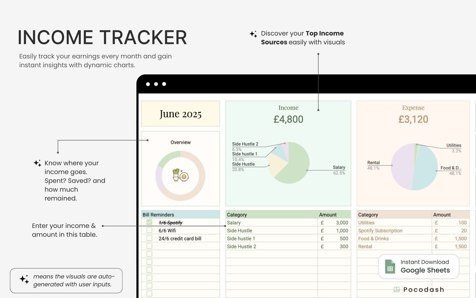โ Monthly Tracker: Allows you easily track and manage income and expenses