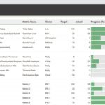 The OKR Template is designed to help you effectively set and track your companyโs mission and up to 5 sets of OKRs. Each Objective can be paired with up to 5 Key Results, ensuring clarity and focus. Key Results are accompanied by their owner, metric name, and target vs. actual figures, enabling precise tracking.